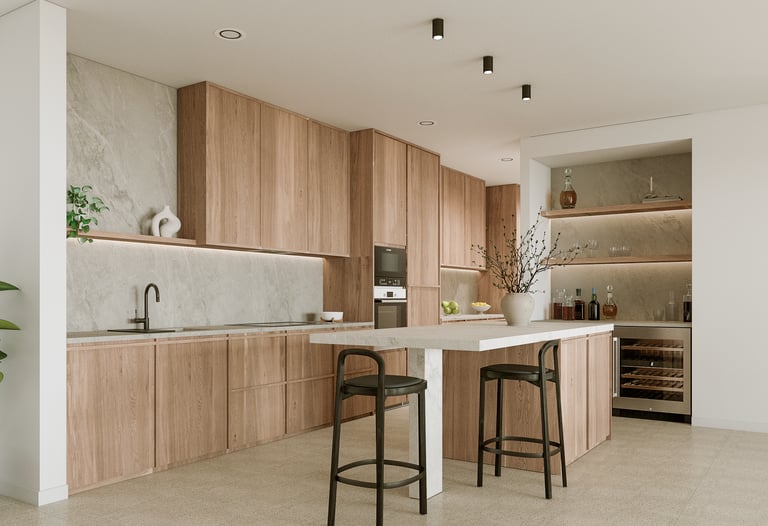 Cuisine et Salle de Bain : Cuisine équipée et salle de bain complète avec mobilier premium.